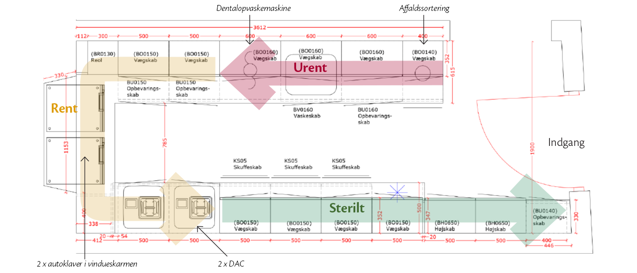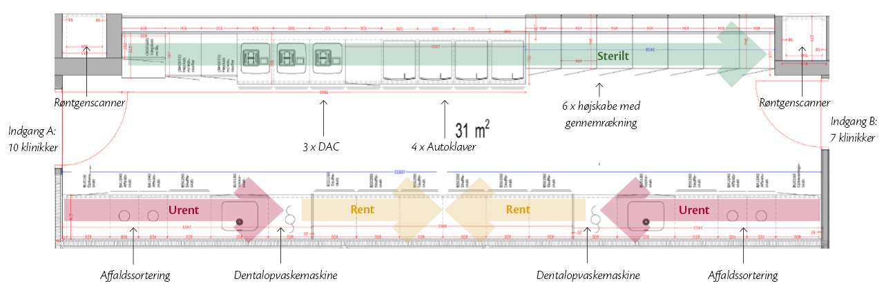 - Plads til 2 store autoklaver, 2 DAC autoklaver og 2 opvaskemaskiner.