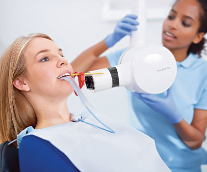 Intraoral røntgen er vejen til sofistikeret, akkurat diagnose. De intraorale røntgensystemer giver værdifuld information om progression af fx interproximal karies, sekundær karies under fyldninger samt status for rødder og knogleområdet omkring tænderne.