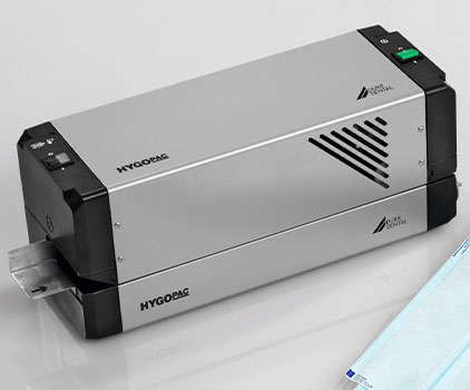 Hygopac fra Dürr Dental er en driftssikker foliesvejser med kompakt design og automatisk gennemløbssvejsning. Den er udviklet til standardmæssig forsegling af sterilemballage og autoklaveposer og har individuel temperaturindstilling samt motor til gennemføring af poser.