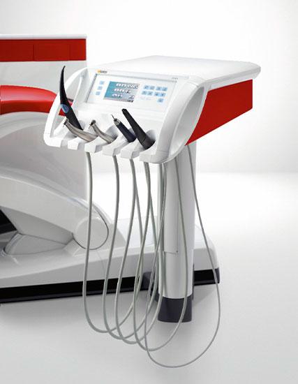 Med plads til fem instrumenter tilgodeser Sinius også langt de fleste behandlingsbehov ligesom det integrerede, automatiske rengøringssystem sørger for permanent desinfektion og rengøring af vandkanaler og sugeslanger.