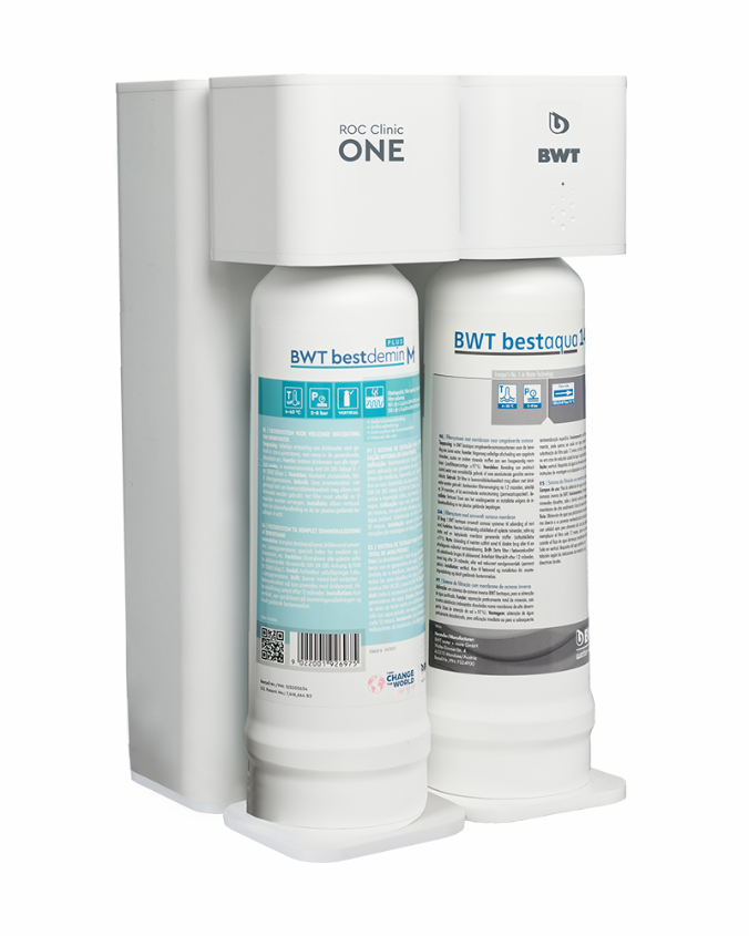 ROC Clinic ONE er BWT's nyeste vandbehandlingsanlæg, der takket være omvendt osmose og efterpolering af vandet sikrer optimal vandkvalitet til både autoklaver og units, så du undgår at skulle have flere separate anlæg.